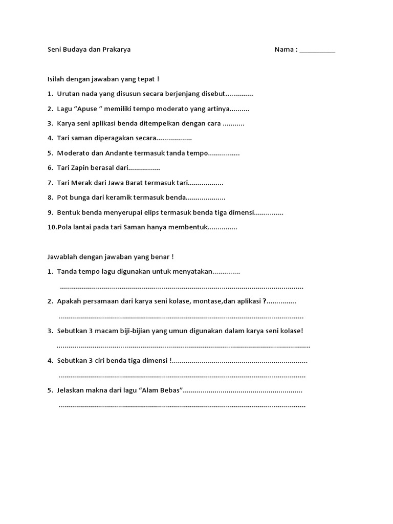 Seni Budaya Dan Prakarya Nama - Source