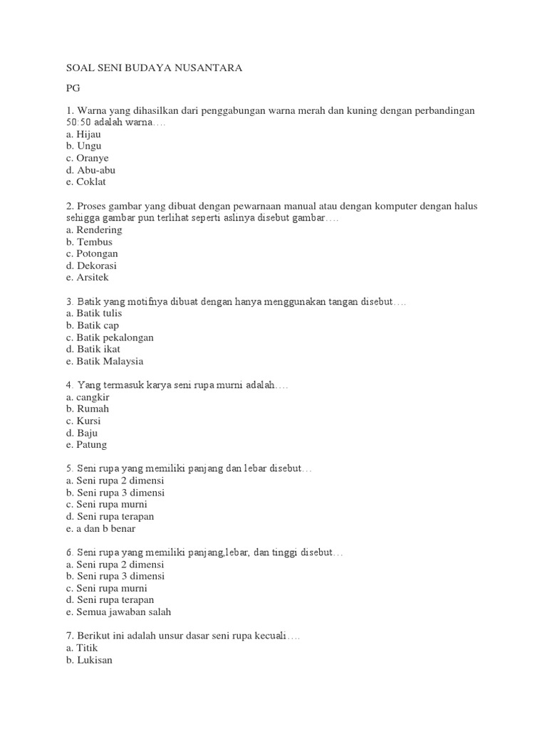 Soal Seni Rupa 2 Dan 3 Dimensi Jawaban Pilihan Ganda - Source